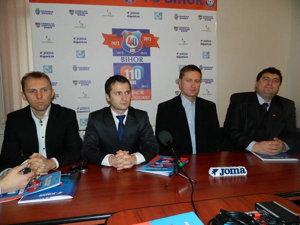 Astfel, cu ocazia împlinirii a 110 ani de când s-a jucat primul meci de fotbal în Bihor şi a 40 de ani de când echipa fanion de fotbal a judeţului poartă titulatura de FC Bihor, oficialii orădeni vor derula pe parcursul întregului an 2012 mai multe manifestări care vor evoca momentele de glorie şi istoria fotbalistică bihoreană şi a clubului fanion. De asemenea, a fost anunţat şi parteneriatul cu firma de echipament sportiv Joma, care a ajuns la o înţelegere pe o perioadă de trei ani cu FC Bihor, cu drept de prelungire pe încă trei.