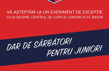 Clubul FC Bihor îşi prezintă, marţi, grupele Centrului de Copii şi Juniori în cadrul evenimentului intitulat "Dar de sărbători pentru juniori"