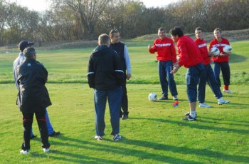 După ce s-au delectat cu acest nou sport, fotbaliştii echipei orădene au asistat şi la o demonstraţie de golf, susţinută de instructorul Gabriel Toader, însă au încercat şi ei crosa de golf, susţinând la final că este mai greu cu acest instrument şi mingea mică, decât cu piciorul şi mingea de fotbal.