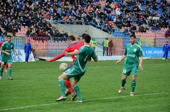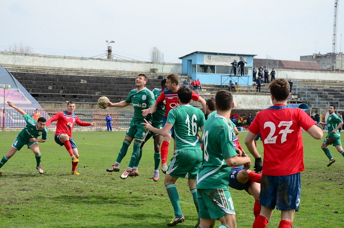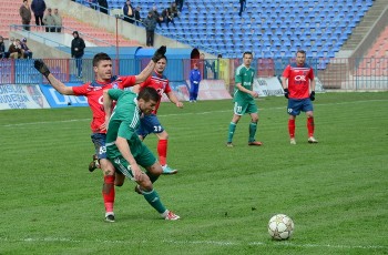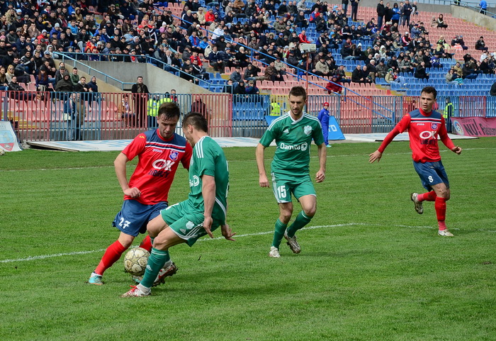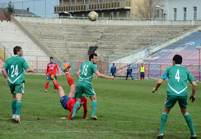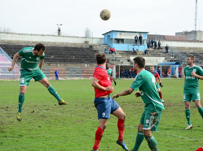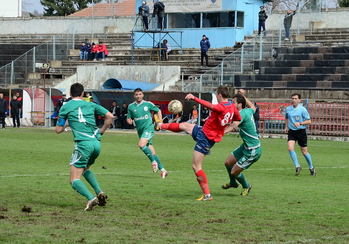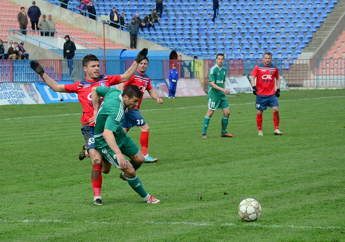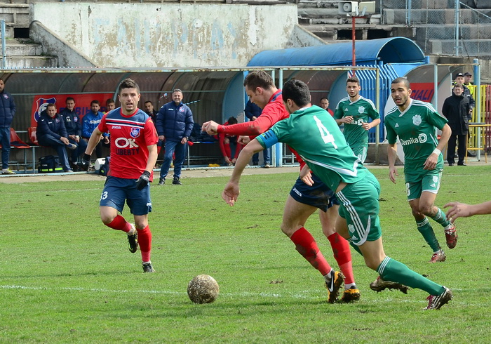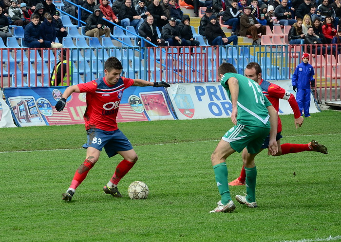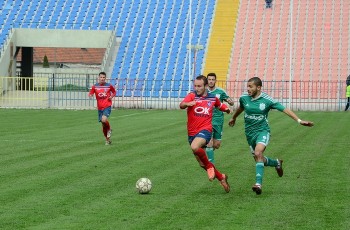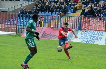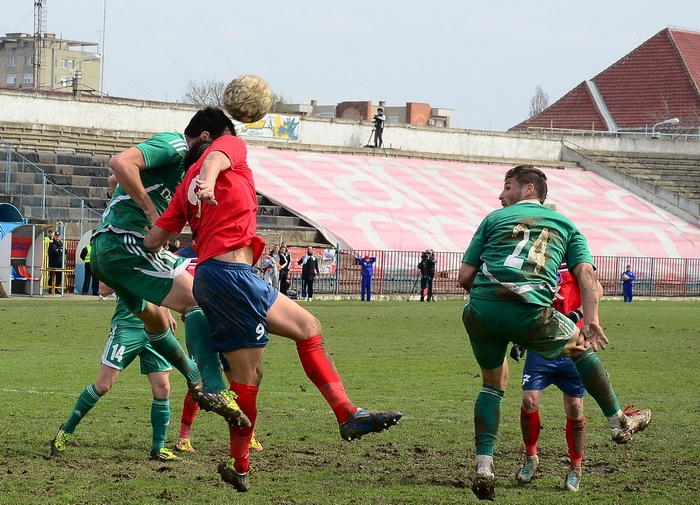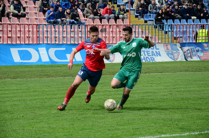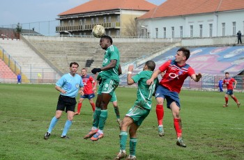 În prima repriză, elevii antrenorului Marian Pană i-a presat serios pe adversari, aceştia arareori reuşind să treacă de linia de centru, numai că în faţa porţii nu au avut luciditate, cea mai clară ocazie de gol ratând-o atacantul Cristian Bud, în minutul 23, care din doar 5 metri nu a reuşit să-l învingă pe portarul advers, Matache, acesta repliindu-se rapid.