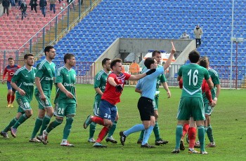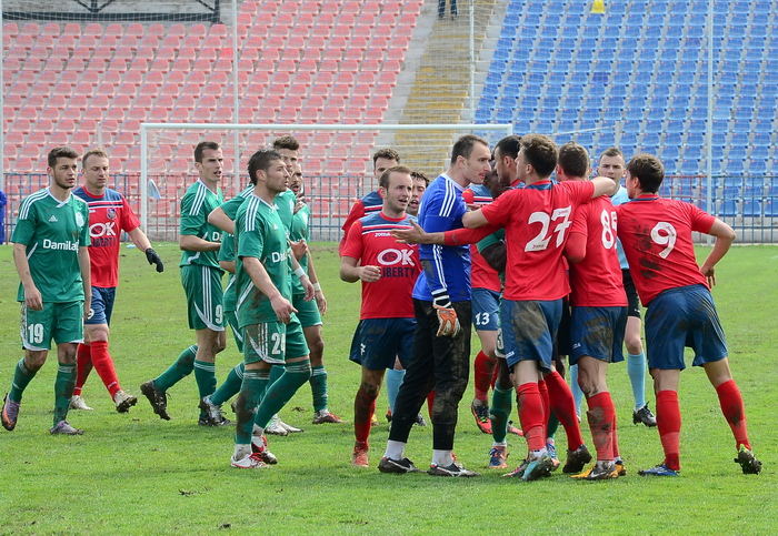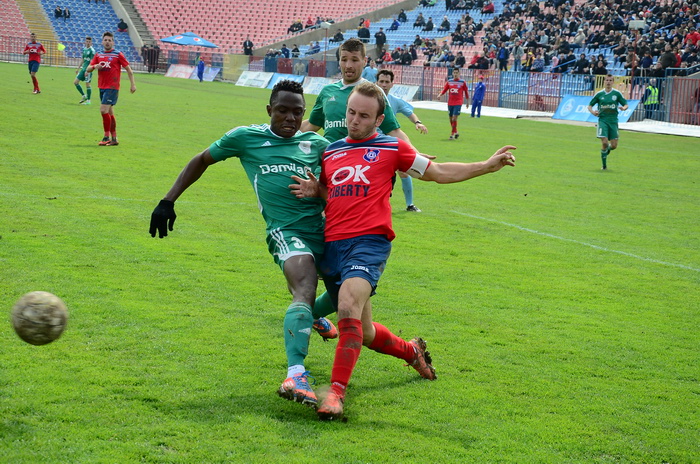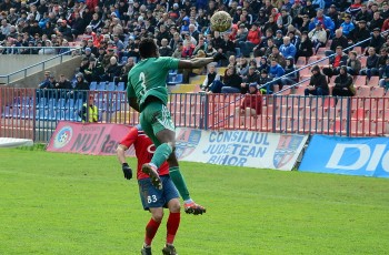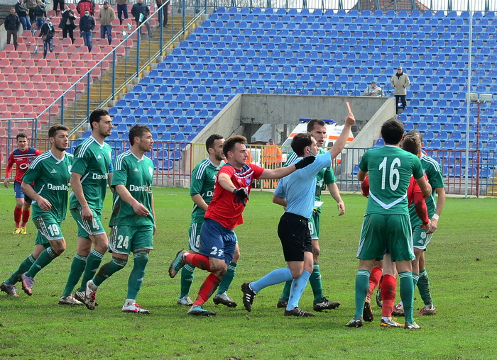 În minutul 69, Pogacsics a prins o minge la 5 metri, a ridicat piciorul în timp ce a reţinut-o şi l-a lovit în faţă pe Voinea. Atacantul s-a văitat pe jos, dar arbitrul a lăsat jocul să continue.