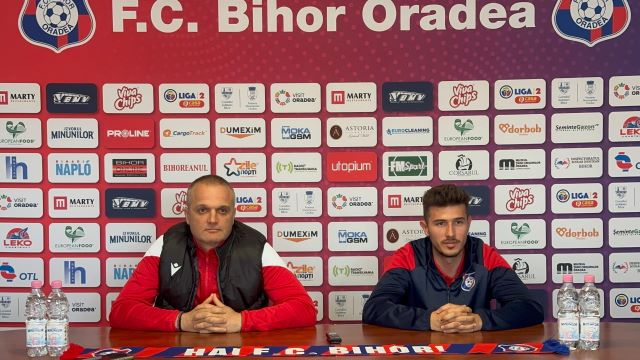 Meciul, care îi poate aduce, matematic, formaţiei FC Bihor evitarea locului 7, a fost prefaţat joi, la Stadionul Iuliu Bodola, de o conferinţă de presă la care au participat antrenorul principal Erik Lincar şi jucătorul Sebastian Cucu.