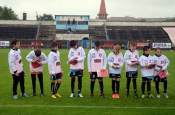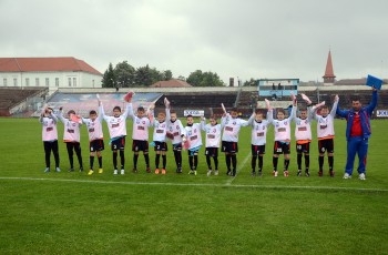 În pauza meciului, Liga Suporterilor echipei FC Bihor şi firma Patrik au premiat echipa de copii născuţi în anul 2002, juniori E, devenită vicecampioană naţională în această lună.