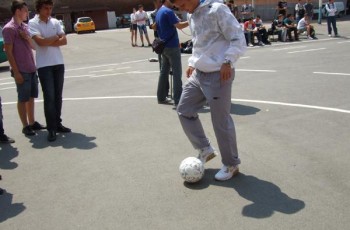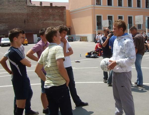 Răzvan Lupu, care l-a înlocuit pe Andrei Florean, plecat să-şi susţină în avans bacalaureatul, a fost miercuri în vizită la aceştia, le-a oferit o minge cu toate autografele jucătorilor formaţiei "roş-albastre", a schimbat câteva pase cu ei, a interacţionat cu elevii şi profesorii şi a dat lovitura de start în finala competiţiei interne, pe care CN "Emanuil Gojdu" o organizează an de an.