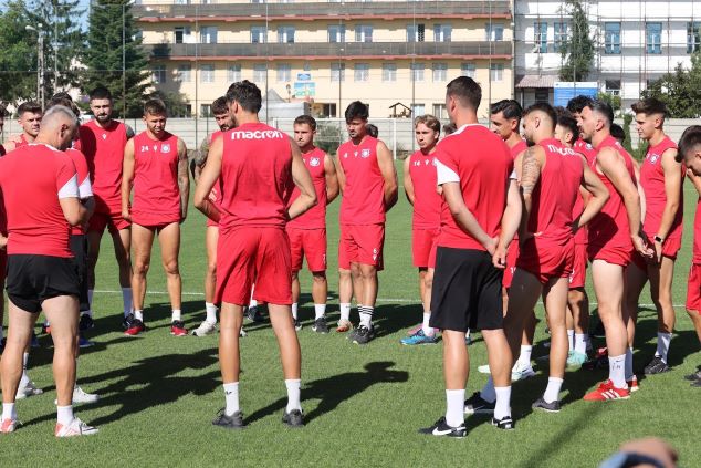 După discursul din vestiar, adresat jucătorilor, pe rând de conducătorii clubului şi antrenorul Erik Lincar, echipa a ieşit pentru primul antrenament, pe terenul II al Stadionului Iuliu Bodola.