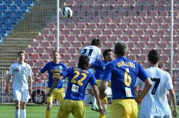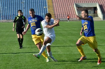 Oaspeţii au încercat să forţeze însă ceva mai mult în prima repriză, când, în minutul 7 au avut o ocazie bună, prin Lemac, cel care a reluat din cinci metri pe lângă poartă, după o centrare venită de la Gavrilescu.