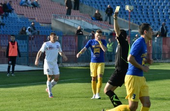 Minutul 34 a consemnat un eveniment important al jocului, atunci când mijlocaşul orădenilor Andrei Haş a primit al doilea cartonaş galben, implicit şi pe cel roşu şi şi-a lăsat echipa în inferioritate numerică.