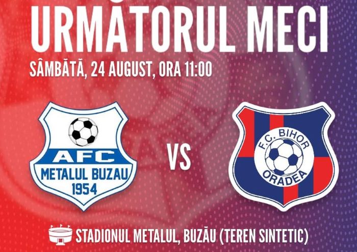 Jocul va conta pentru etapa a 4-a a Ligii a II-a şi va opune echipele situate pe poziţiile 14, Metalul Buzău, cu 3 puncte şi 10, FC Bihor Oradea, cu 4 puncte.