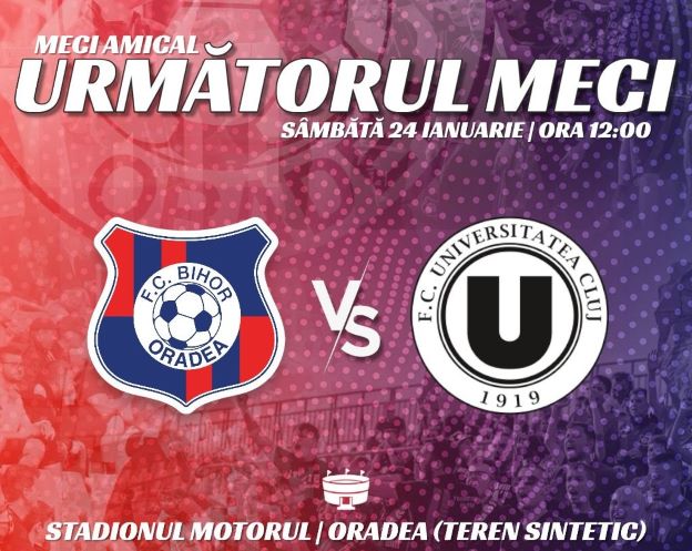 21.01.2026, 14:53Formaţia de seniori a clubului nostru va susține primul joc amical al acestei ierni sâmbătă, 24 ianuarie, de la ora 12:00, pe terenul sintetic de la Baza Sportivă Motorul. Adversar va fi echipa U Cluj U19, una dintre cele mai bune formații din țară la această categorie de vârstă. Astfel, se anunţă un duel interesant şi disputat și o bună oportunitate de evaluare pentru staff-ul tehnic.