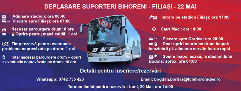 Transport gratuit cu autocarul pentru suporterii bihoreni la Filiaşi!
