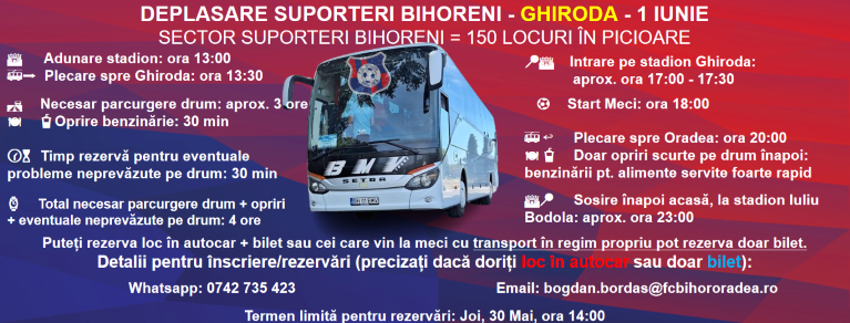 - Start Meci: ora 18:00 (bilet asigurat de FC Bihor)